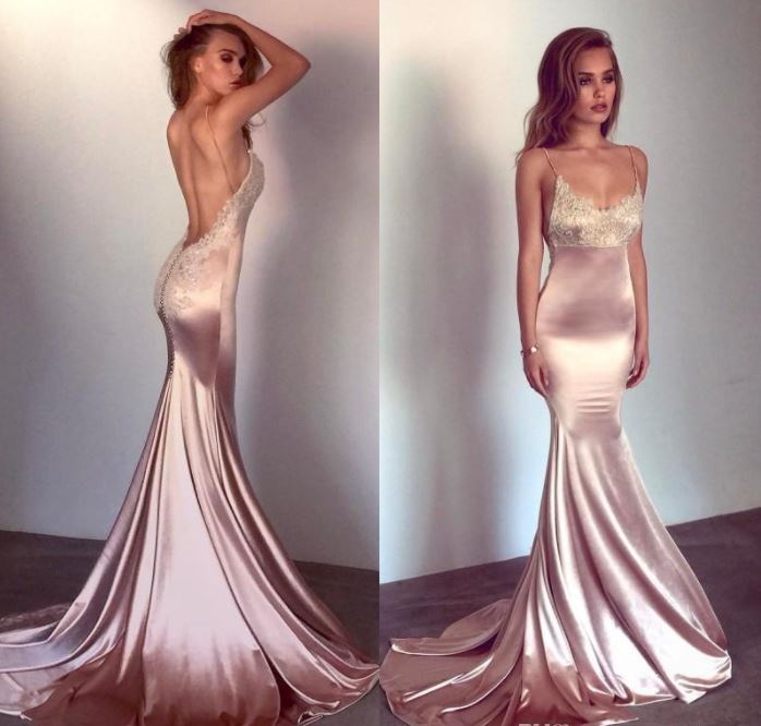Sexy Mermaid Satin Prom Dresses Attractive Backless Sleeveless Lace Appliques Party Dresses Fashion Custom Made Simple Prom Dress