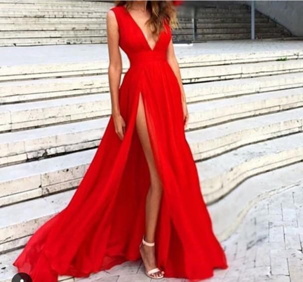 Deep V-Neck Formal Prom Dress Sweep Train Piping Side Split Modern Long Skirt Transparent Pageant Party Gowns