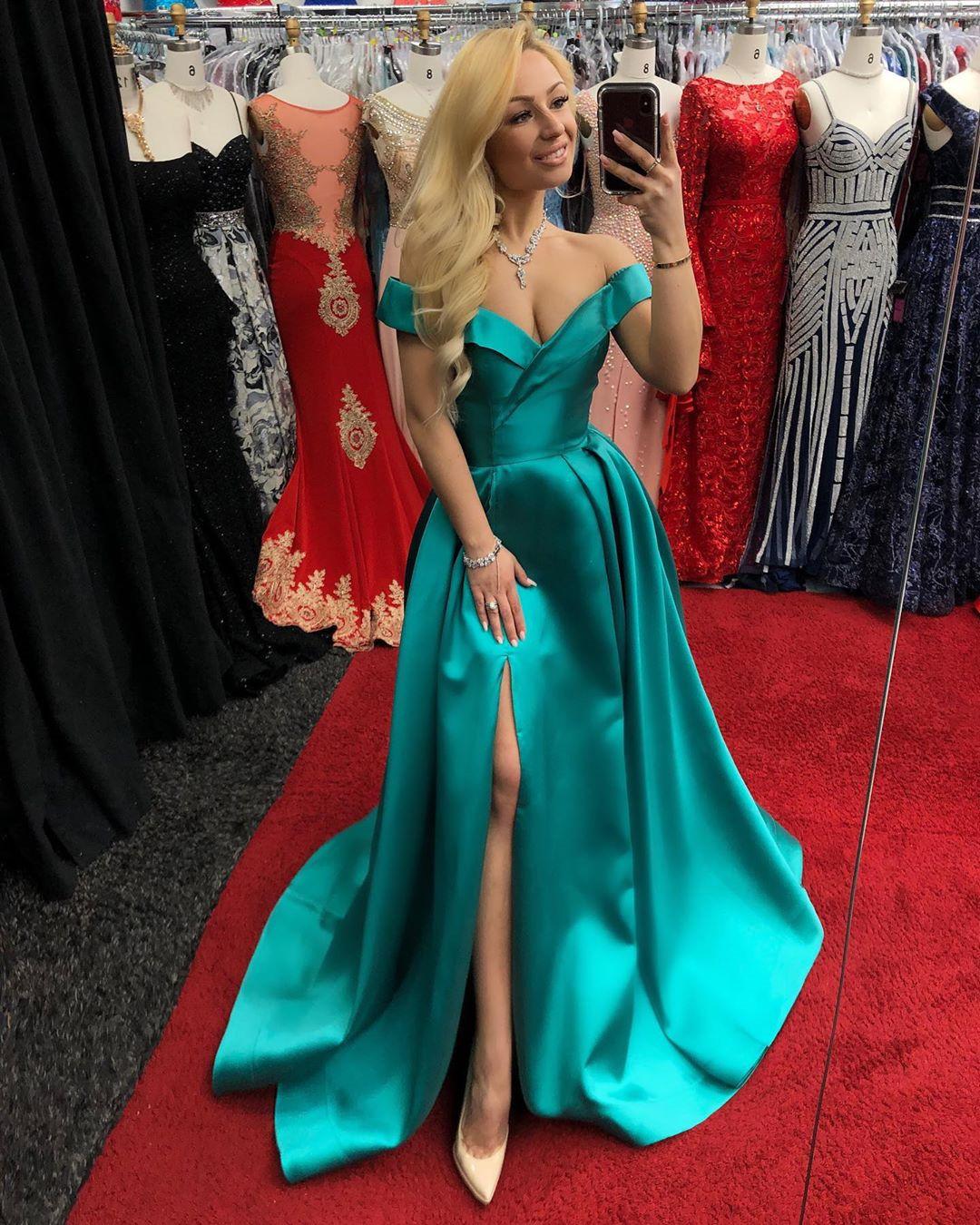 Elegant Lady Prom Dresses Off the Shoulder High Slit Long Gown Celebrity Dresses robe de soirée de mariage Evening dress