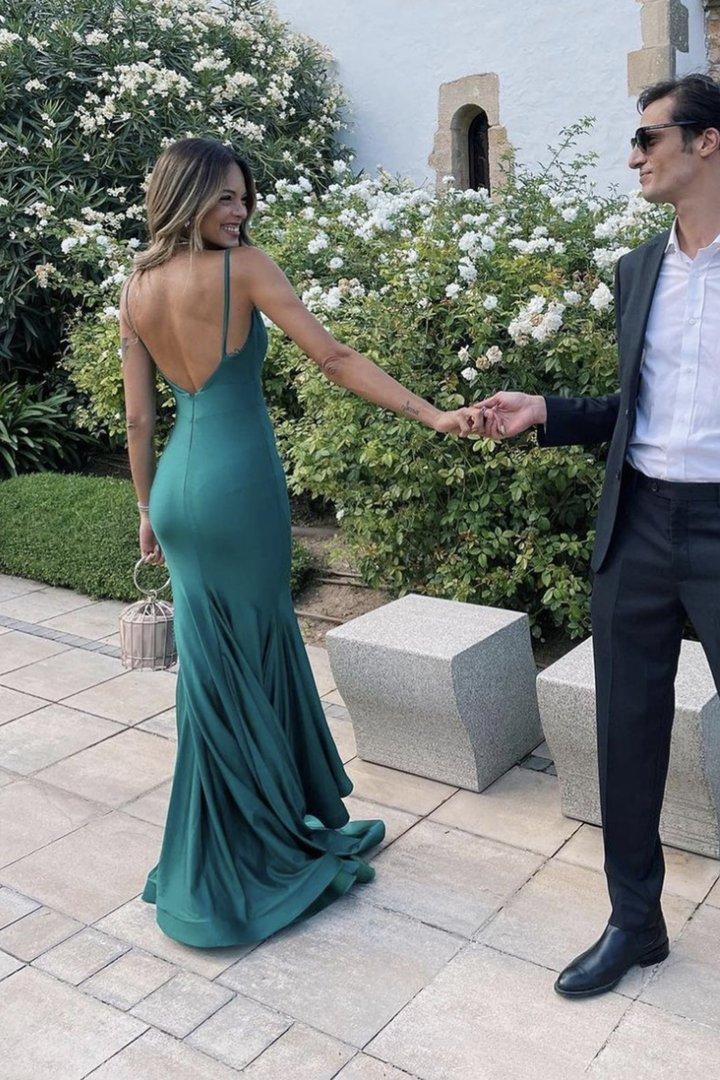 New Mermaid Long Prom Dresses Sexy Deep V Neck Backless Sweep Train Formal Party Evening Gowns