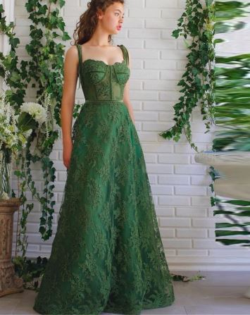 Exquisite Emerald Green Lace Applique Evening Dresses Spaghetti Straps Velour Boning Slim Corset Long Prom Gowns