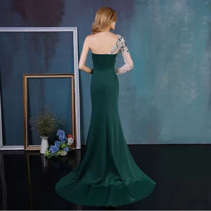 Sexy Mermaid Evening Dresses With One-shouder Strapless Applique Race Floor-length Formal Party Prom Dress