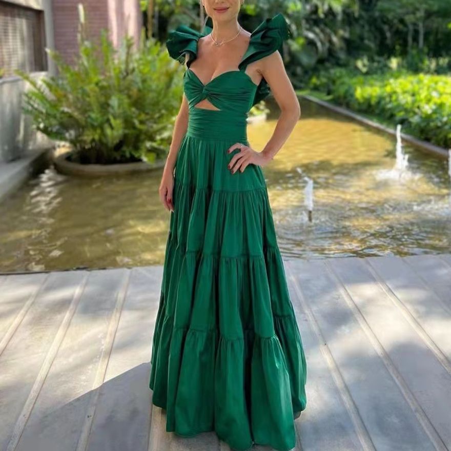 V Neck Evening Dresses Long A Line Emerald green Sexy Formal Party Dress