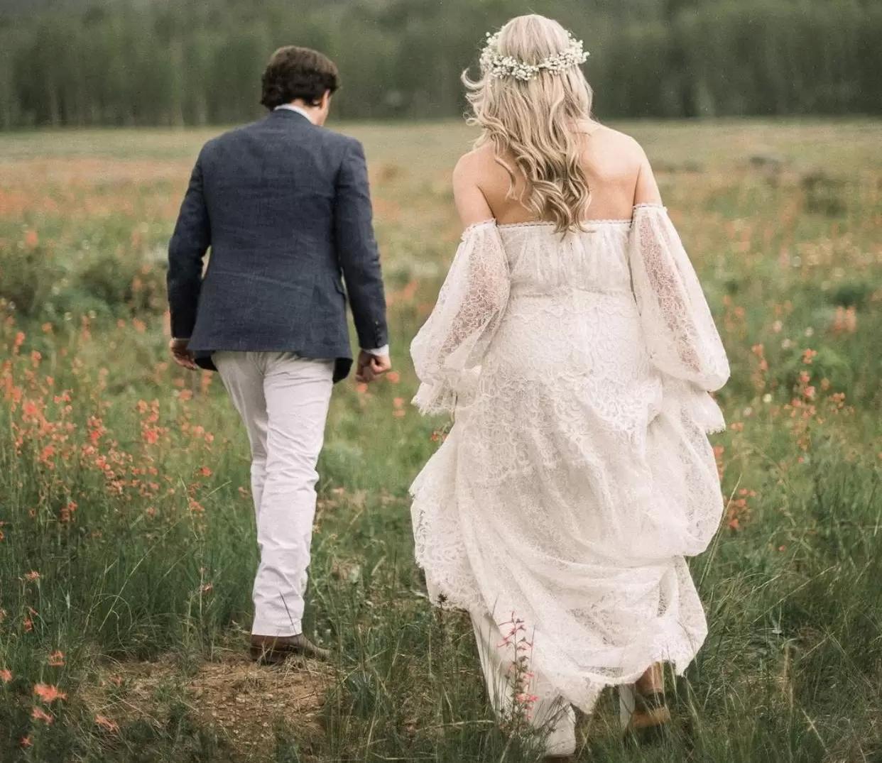 Country Boho Wedding Dresses Bridal Gown with Detachable Long Sleeves Sweetheart Neck Sweep Train A Line Plus Size Custom Made