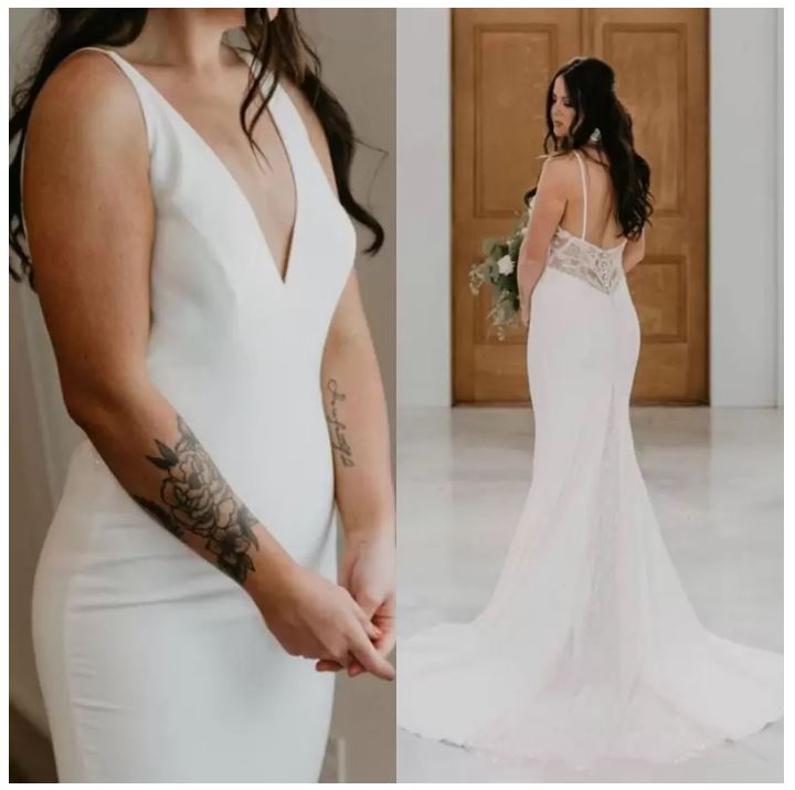 Simple V Neck Backless Mermaid Beach Bridal Wedding Gowns Plus Size Chiffon Sweep Train Wedding Dresses With Lace