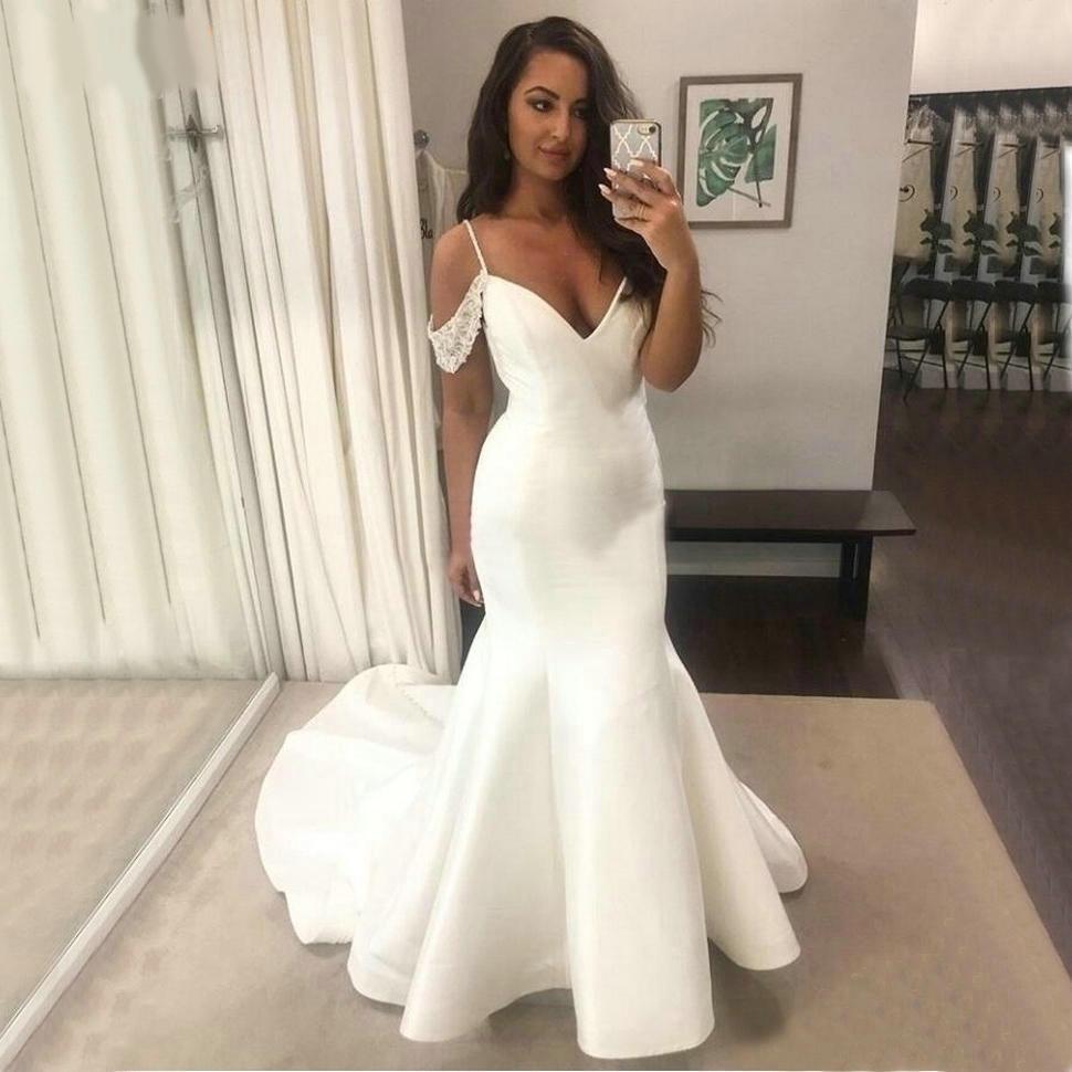 Sexy Spaghetti Drop Sleeve Mermaid Wedding Dresses Garden Beach Boho Bridal Gowns Simple Satin Cheap Wedding Dress