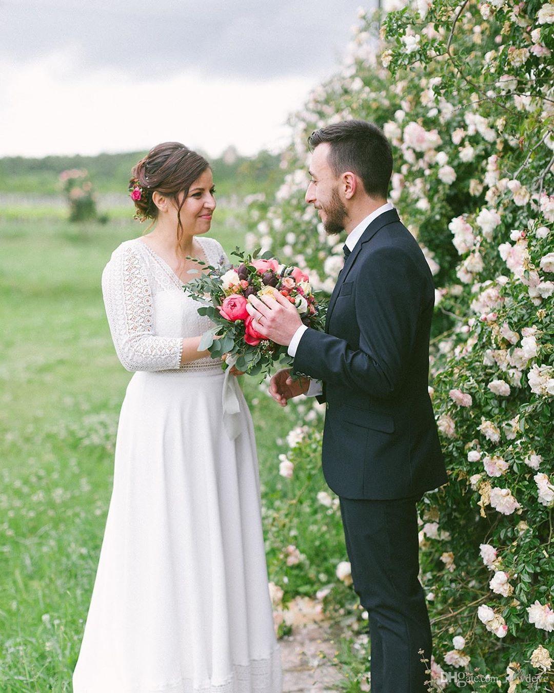 Bohemian Wedding Dresses V Neck Long Sleeves Lace Appliques Bridal Gowns Custom Made Sweep Train Plus Size A-Line Wedding Dress