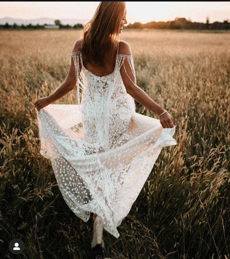 Romantic Lace Boho Wedding Dress Sexy V Neck Backless Tassel shoulder strap Mermaid Wedding Gowns