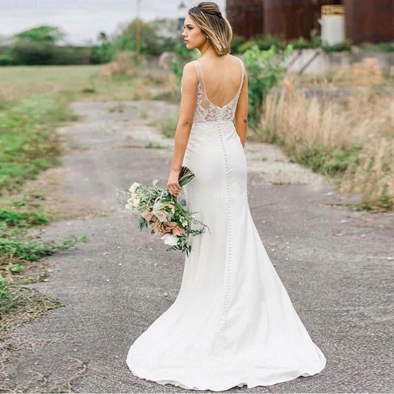 Sexy V Neck Backless Mermaid Beach Wedding Dresses Straps Boho Trumpet Formal Bridal Gowns