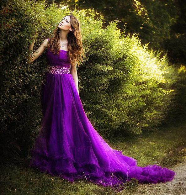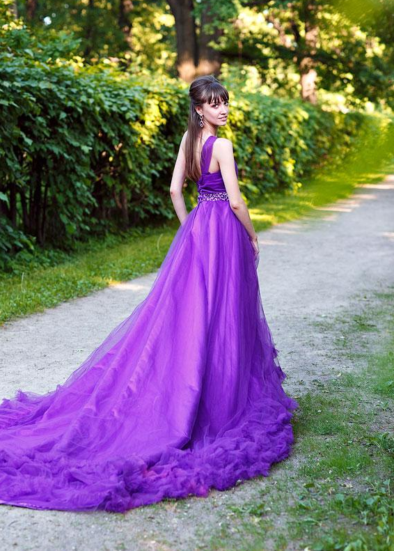 Chic A-Line Tulle One Shoulder Wedding Dress Crystals Beading Court Train Purple Wedding Dress robes de mariée Maternity Wedding Dresses