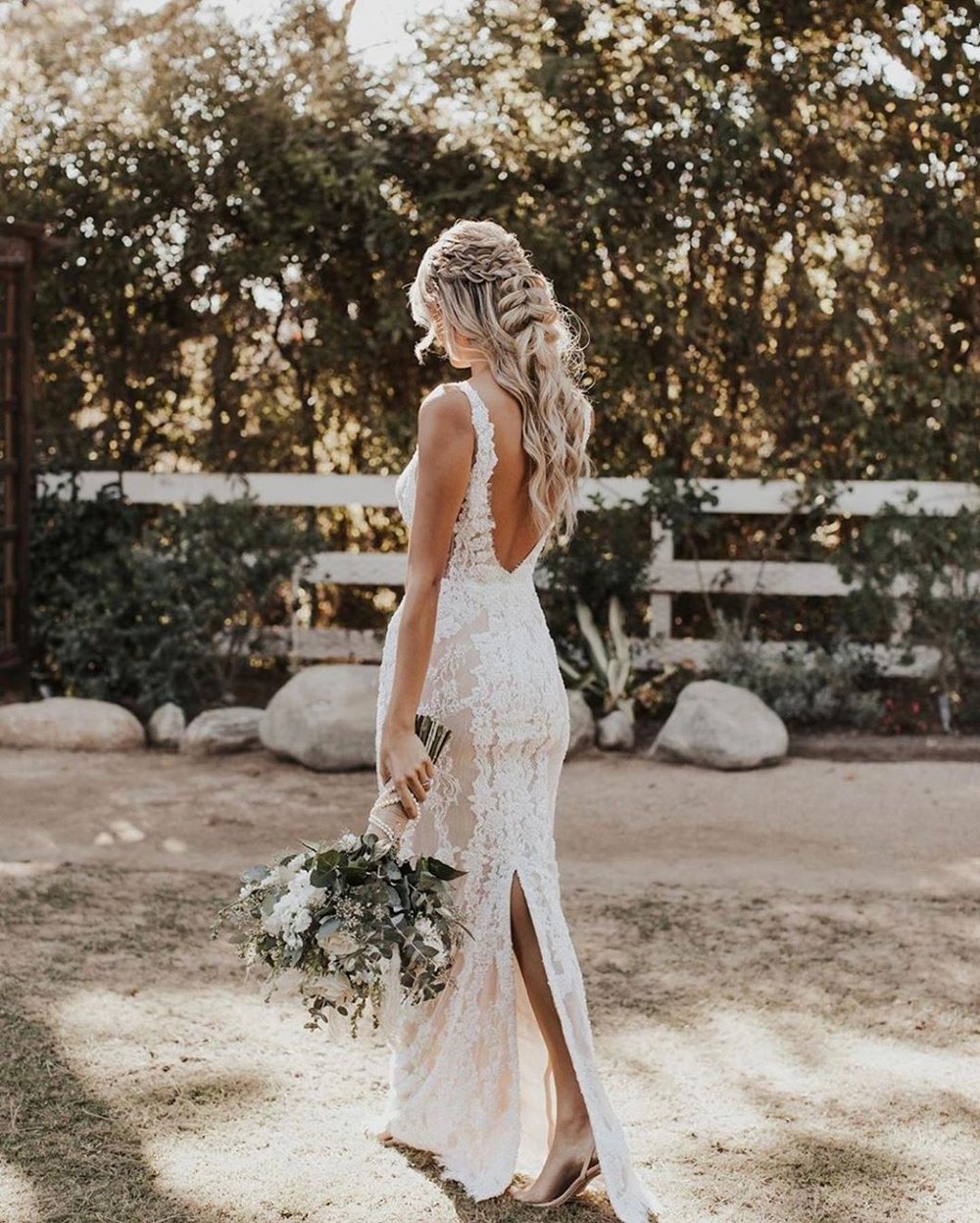 Sheath Wedding Dresses White Lace Champagne Lining vestidos novia matrimonio Deep V-Neck Beaded Appliques Bride Dress