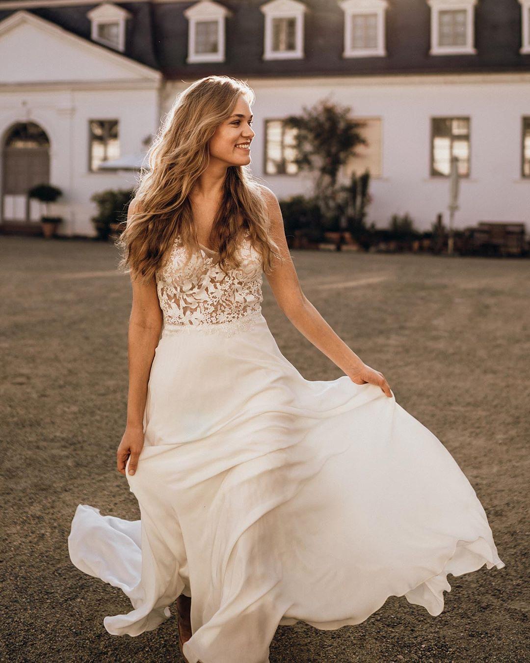 Stunning Lace Backless Beach Wedding Dresses V Neck A Line Appliqued Boho Bridal Gowns Sweep Train Chiffon Wedding Dress