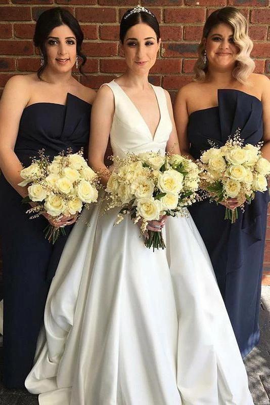 Chic Ivory Satin V Neck Wedding Dresses Open Back Modest Ball Gown Wedding Dress