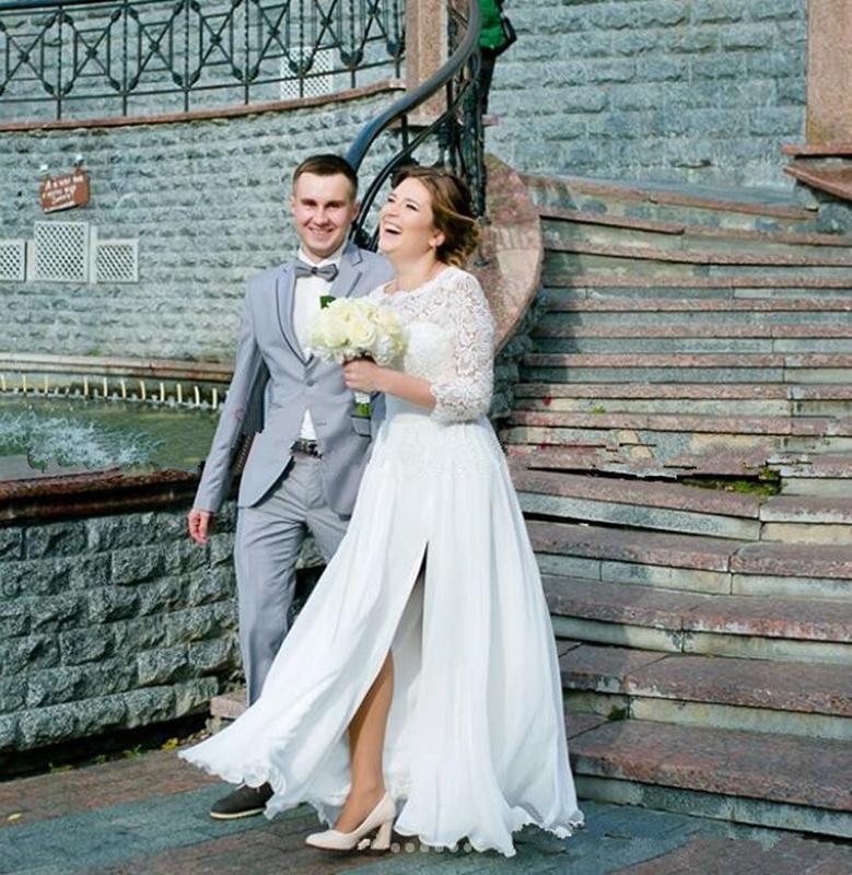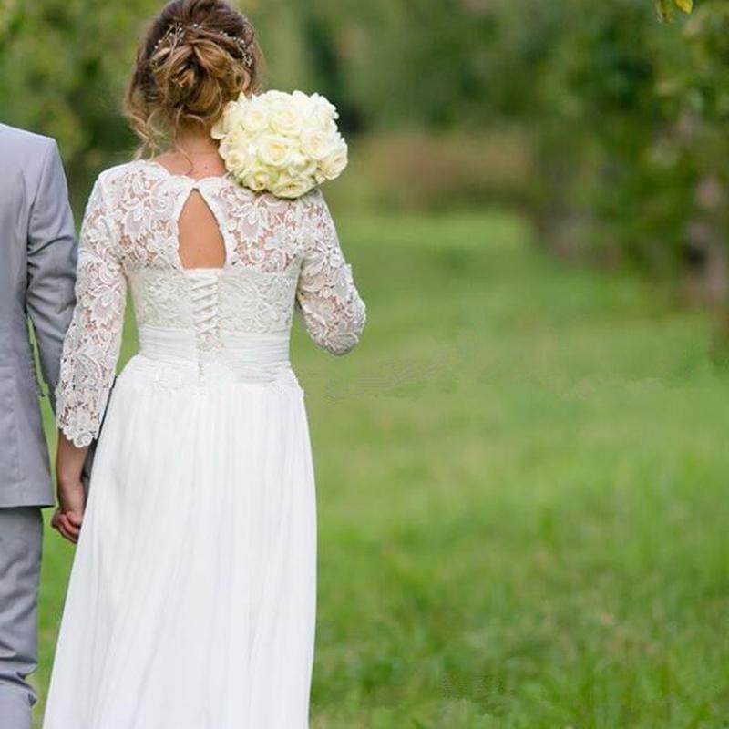 Boho Beach Garden Wedding Dresses A Line Chiffon Jewel Neck Lace Bridal Gowns