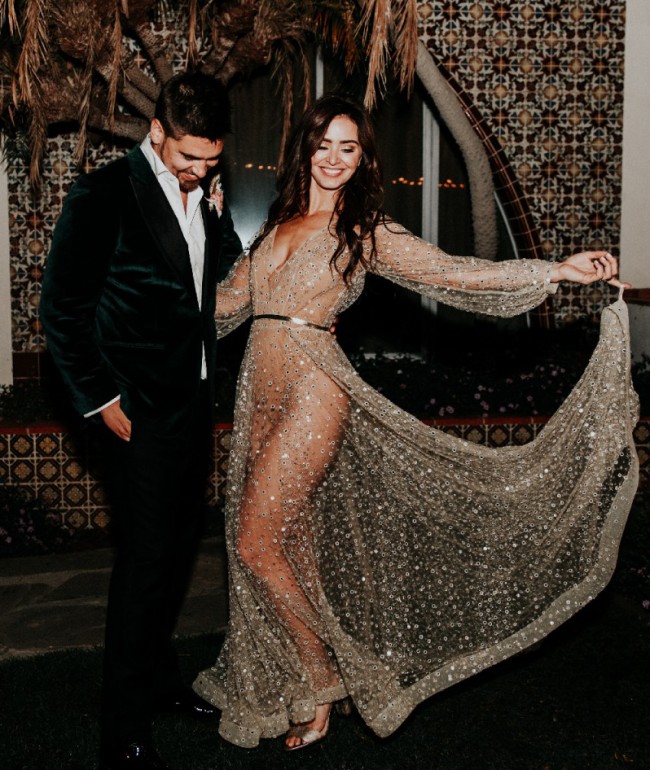 Sexy Wedding Dress, Sparkle Bling Bling Wedding Dress, Deep V-neck High Split Bridal Dress
