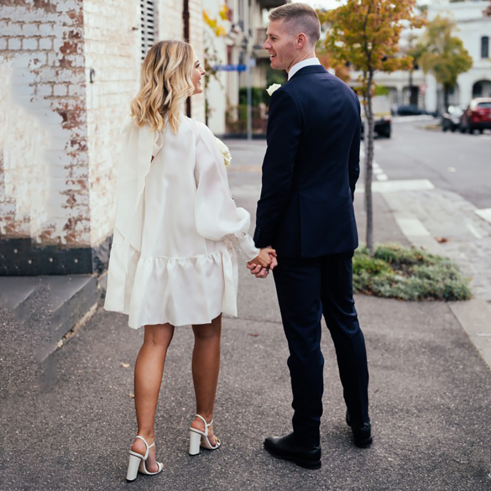 High Neck Mini Length Satin Organza Bridal Gown Custom Made Above Knee Length Long Puff Sleeves Ruched Plus Size Wedding Dress