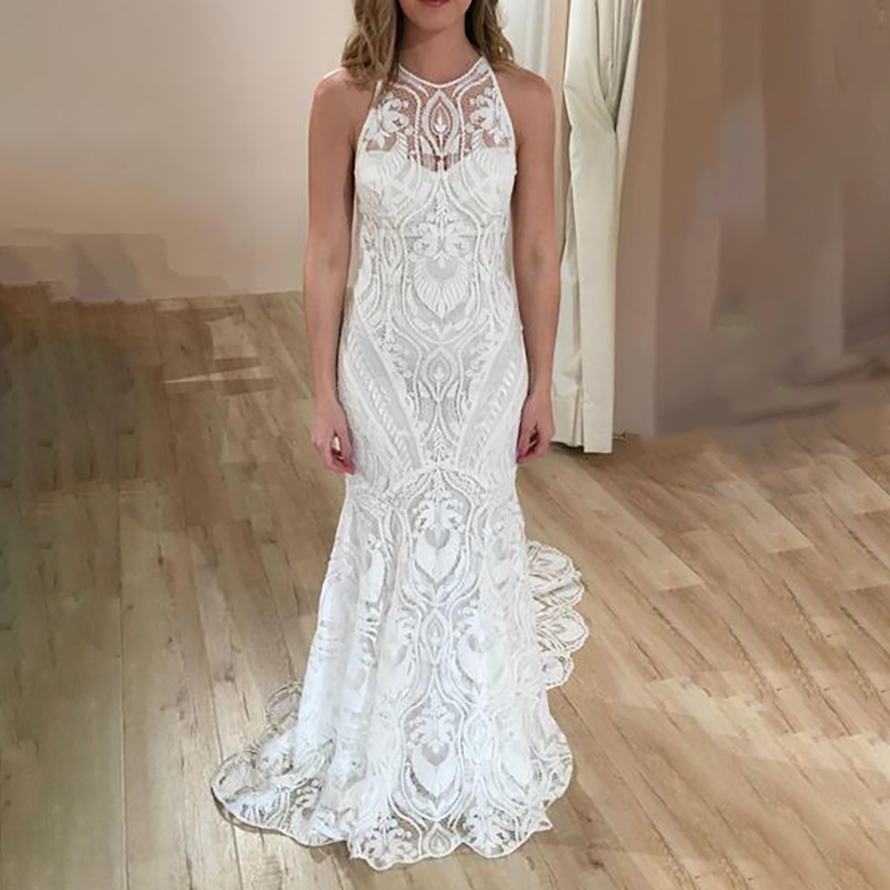 Keyhole Back Boho Elopement Fit and Flare Wedding Gown Drop Ship Custom Made Bohemian Plus Size Cutout Lace Mermaid Bridal Dress