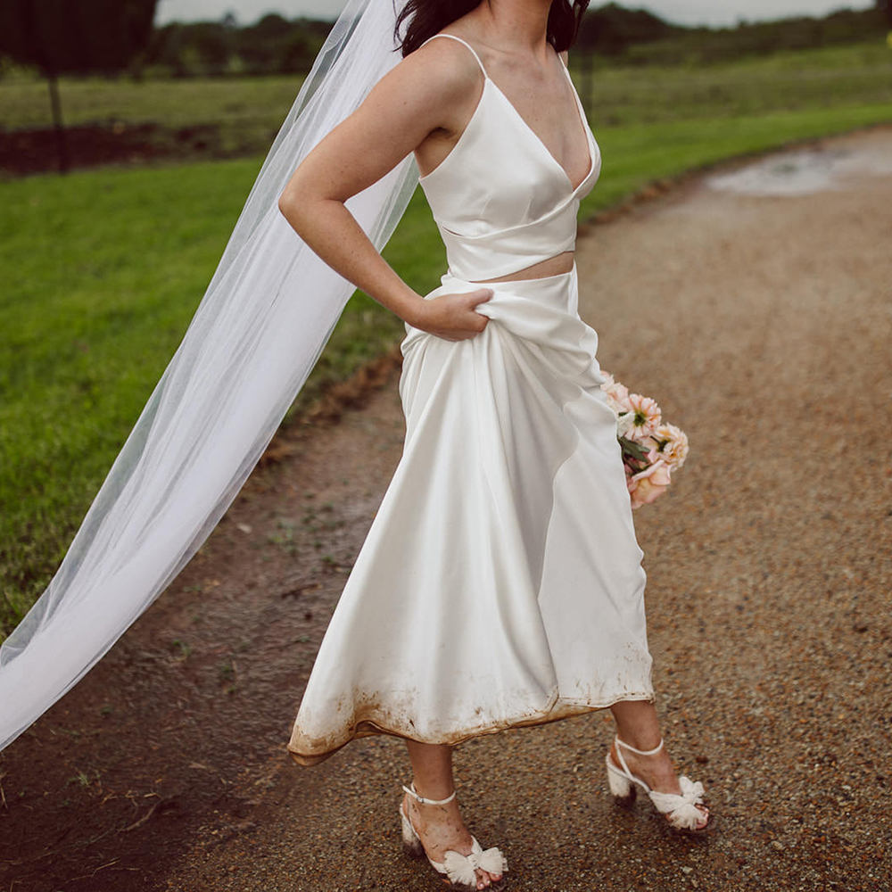 Spaghetti Straps Crepe Two Pieces Minimalist Wedding Crop Top Dress Custom Made Sheath V Neck Backless Simple Sexy Bridal Gowns