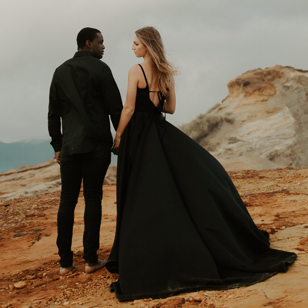 Black Simple Beach Spaghetti Straps Alternative Wedding Dress Backless Low Cut Custom Made A Line Minimalist Scoop Bridal Gowns