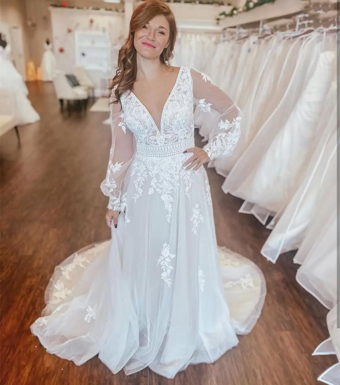 Boho Long Sleeves Wedding Dresses Bridal Gown Lace Applique Sweep Train Plunging V Neck Chiffon Tulle Sexy Vestido de novia Custom Made