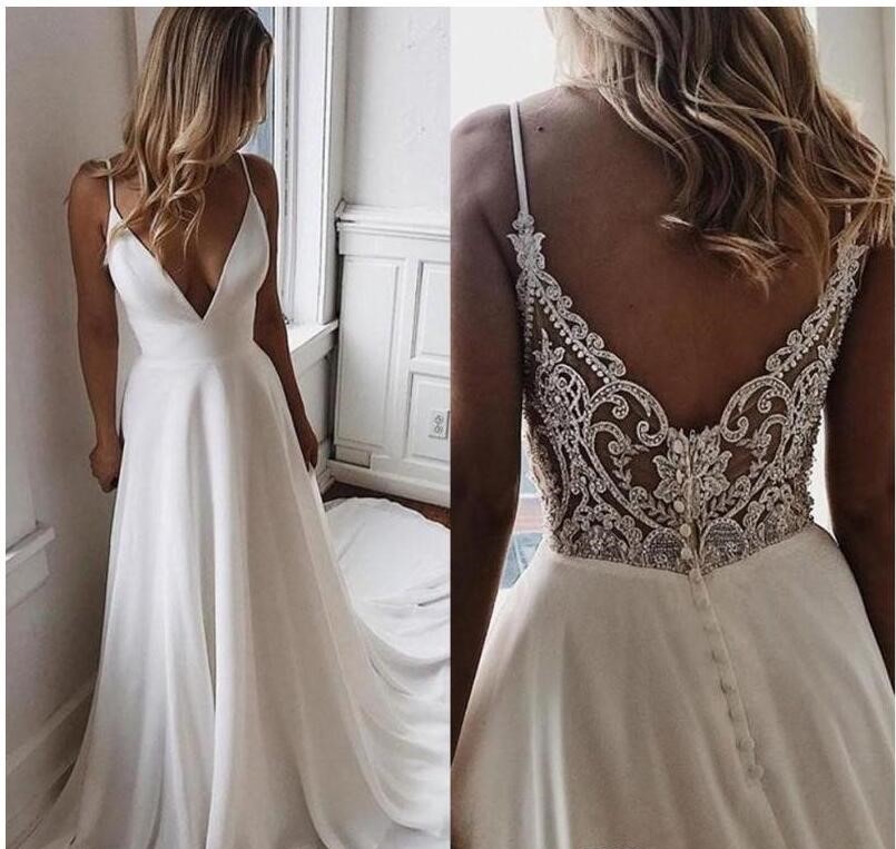 Simple V Neck Chiffon A Line Boho Beach Wedding Dresse Beaded Applique Formal Bridal Gowns Cheap Custom Bride Dress