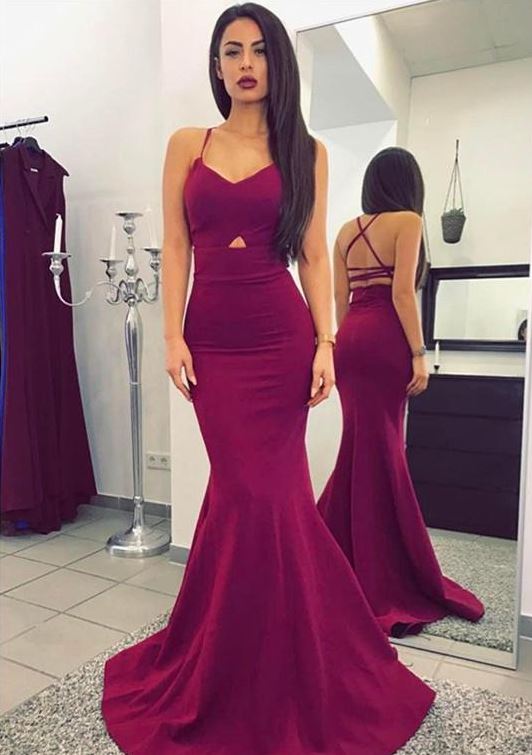Simple Satin Mermaid Prom Dresses Sexy Spaghetti Straps Backless Evening Gowns