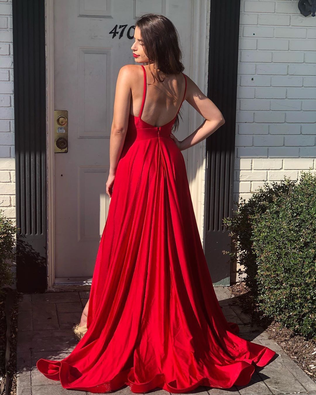 A Line V Neck Red Long Prom Dress