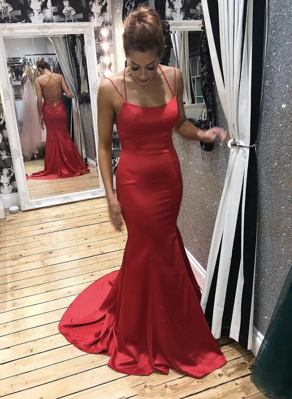 Sexy Mermaid Spaghetti Straps Red Long Prom Dress