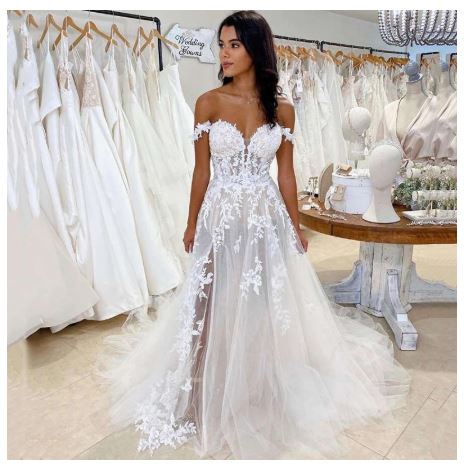 Lace Vintage Wedding Dresses off Shoulder Split Side Boho Bride Dress Cheap Wedding Gowns