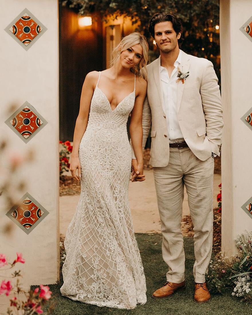 Mermaid Wedding Dress for Bride, All Over Floral Lace Modern Bohemian Fit and Flare Boho Bohemian Bridal Gown
