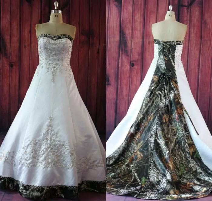 Modest A Line Camo Wedding Dresses Strapless Beading Bridal Gowns