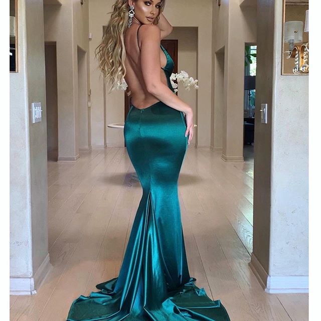 Sexy Mermaid Long V Neck Emerald Prom Dress