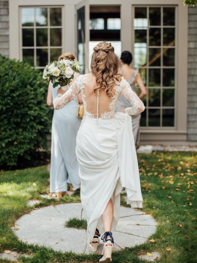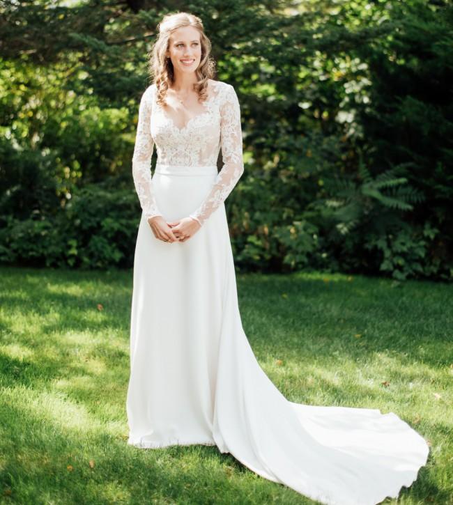 A-line Lace Wedding Dresses Long Sleeves V Neck Chiffon Sweep Train Bridal Gowns