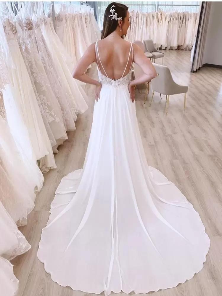 Bohemian Elegant V Neck Sleeveless Backless Spaghetti Strap Bridal Gowns Wedding Dresses