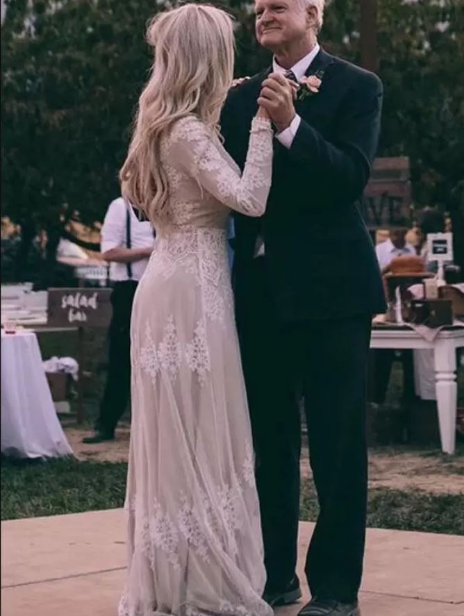 Ivory Bohemian Wedding Dresses Long Sleeves Modest A Line Jewel Neck Appliques Beach Wedding Dress
