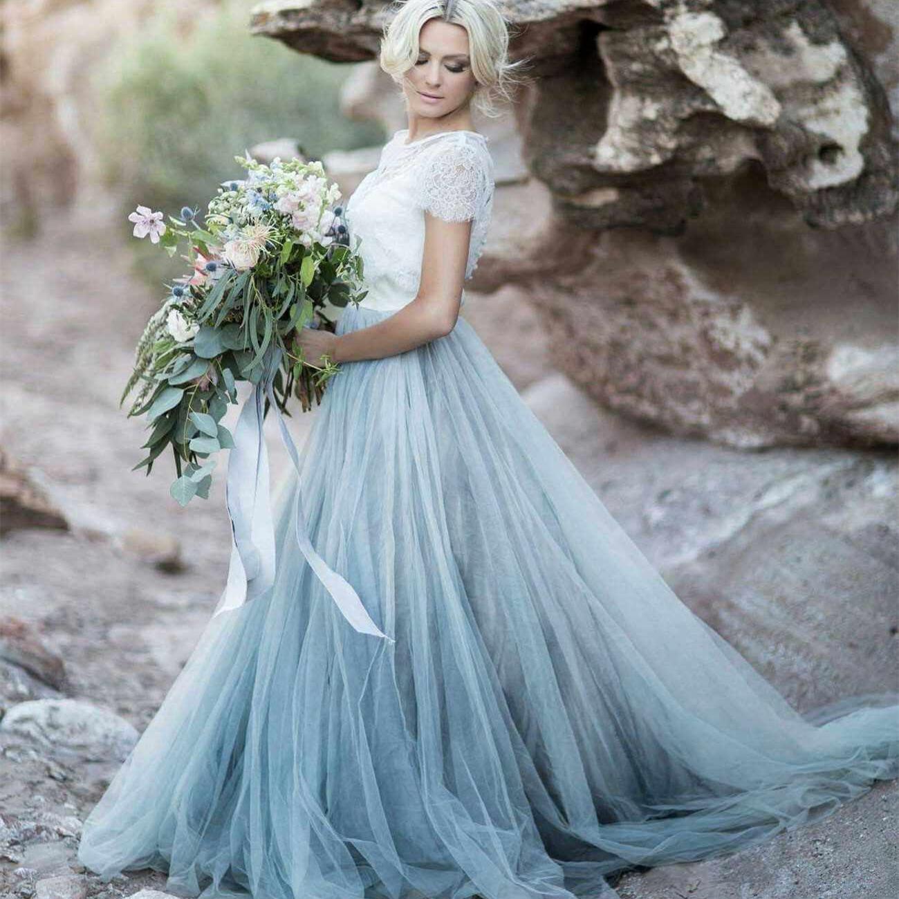 Bohemian Beach Tulle Wedding Dresses Bridal Gowns Two Pieces Fairy A Line Cap Sleeves Backless Bride Dress