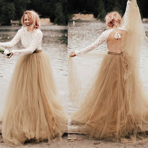 Bohemian Two Piece Backless Wedding Dresses Bridal Gowns