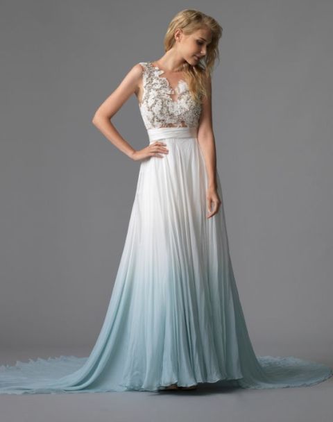 Dye Colorful Blue Wedding Dress, Long Wedding Dresses