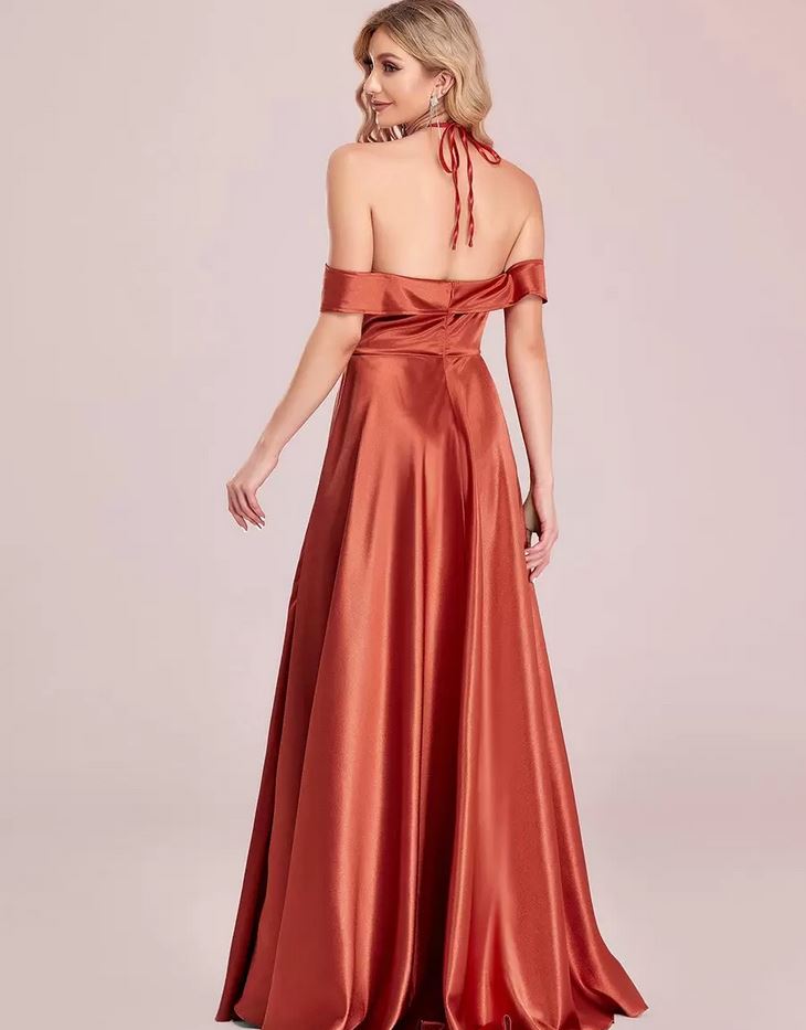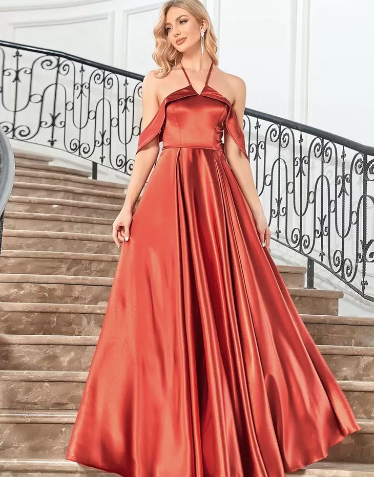 Sexy Halter Off the Shoulder Long Prom Dresses A-line Backless Floor Length Party Dress