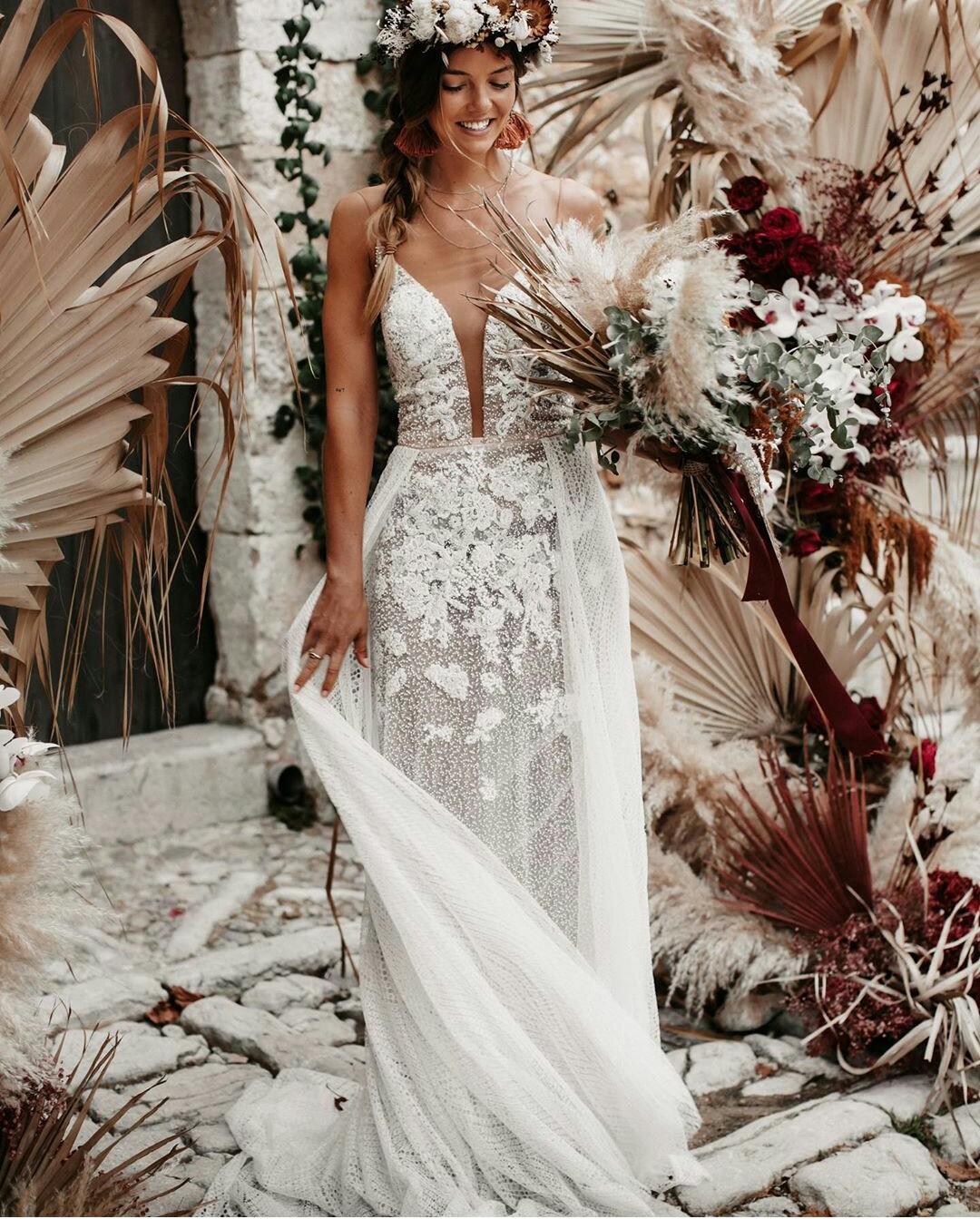Bohemian Wedding Dresses with Overskirt Lace Spaghetti Straps Country vestido de novia Sexy Beach Bridal Wedding Gowns