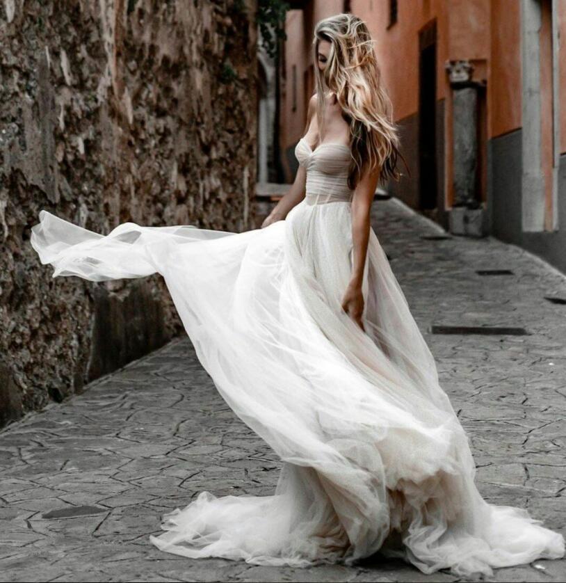 Sweetheart Bohemian Wedding Dresses Backless Fairy Soft Tulle Western Country Girls Bride Reception Gown