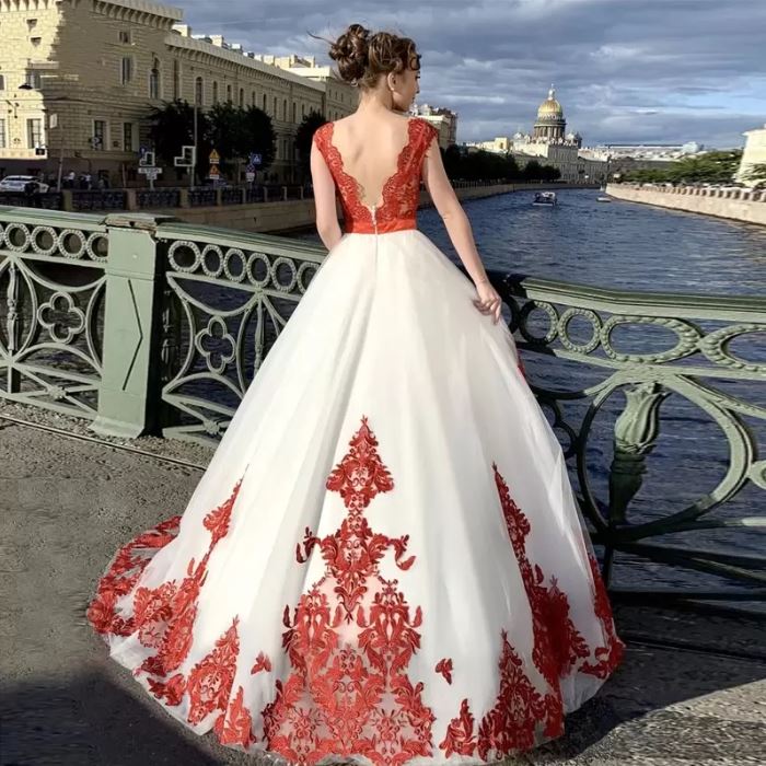 Sexy Split A Line Beach Wedding Dress White And Red Bride Formal Gowns Illusion V-neck Sleeveless Backless Floor Length Tulle Bridal Dresses