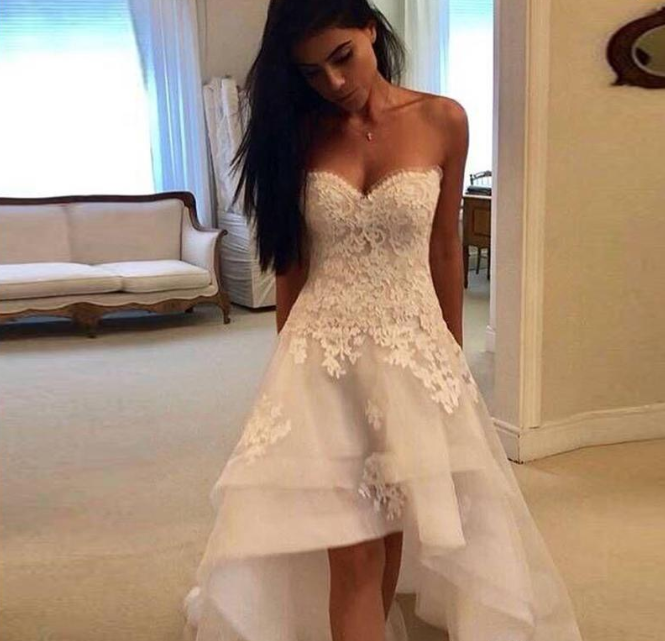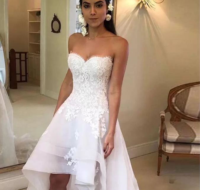 High Low Wedding Dress Sweetheart Appliqued Lace Tulle Backless Boho Bride Gown