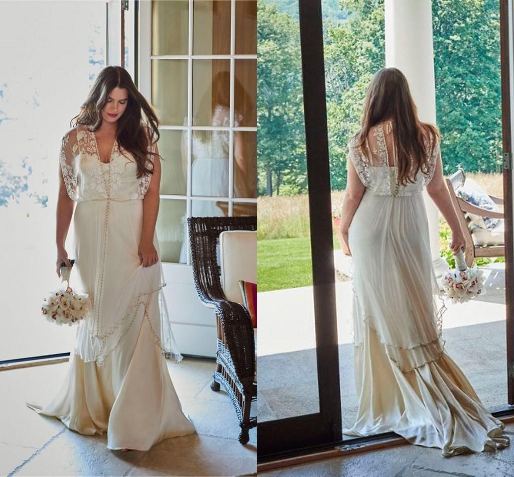 Bohemain Wedding Dresses Lace Pearls Beaded Catherine Deane Lita Country Beach Chiffon Flowy Bridal Dress