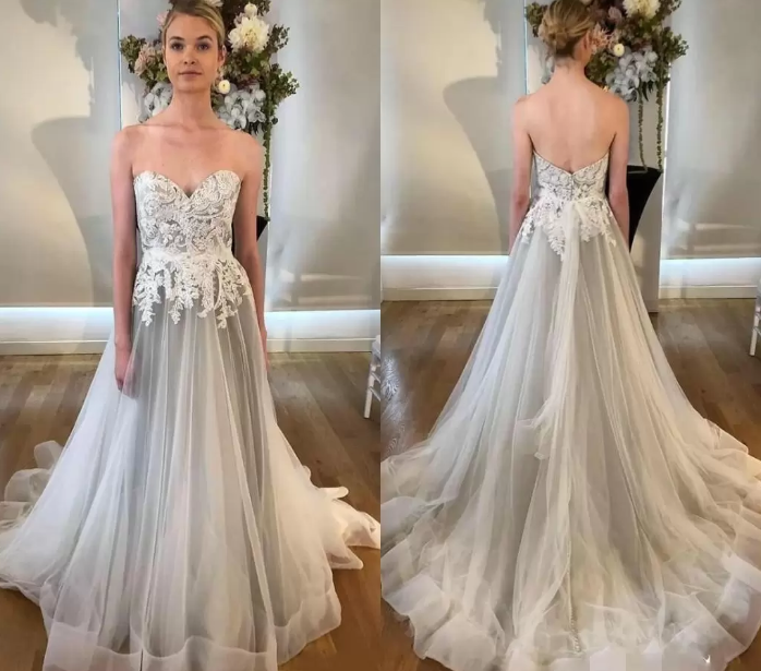 Boho Wedding Dresses Lace Applique Tulle Organza Sweetheart Sweep Train Zipper Back Custom Made Wedding Gowns