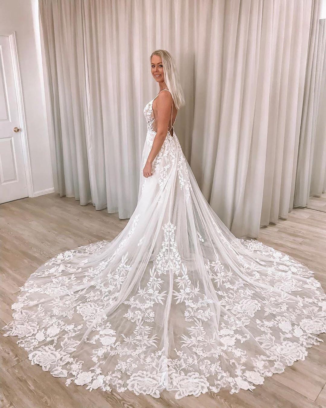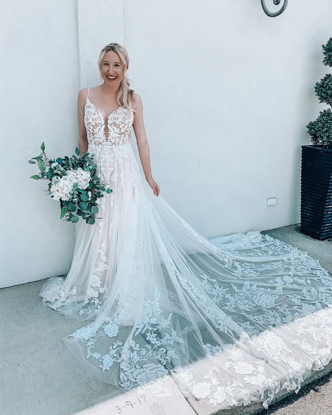 Vintage A Line Boho Beach Wedding Dresses Lace Applique Formal Bridal Gowns