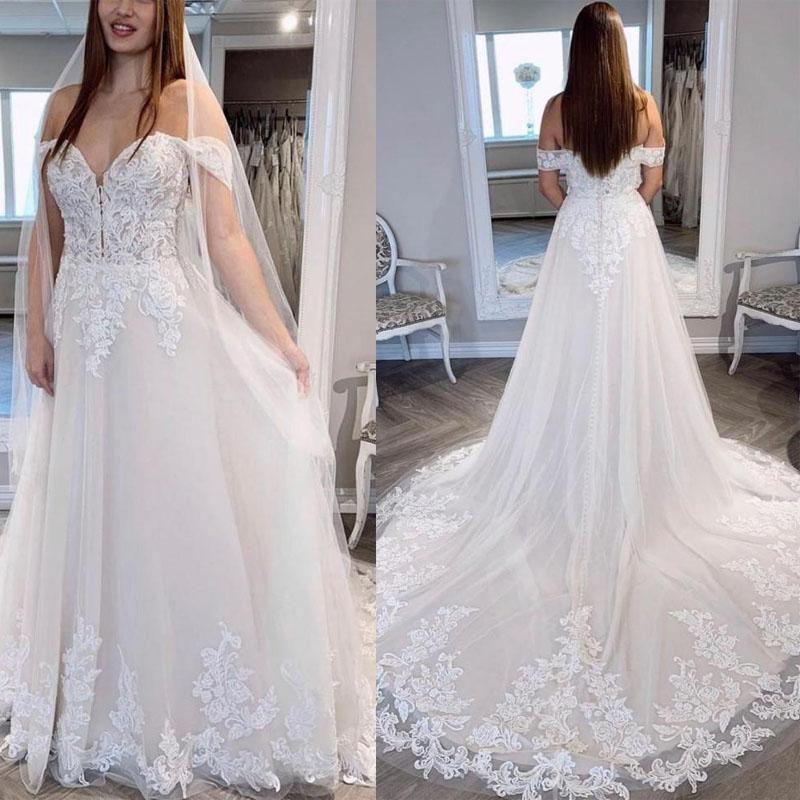 Vintage Lace Wedding Dresses A Line Off The Shoulder Bridal Gowns Appliqued Back Sweep Train Country Summer Boho Marriage Dress