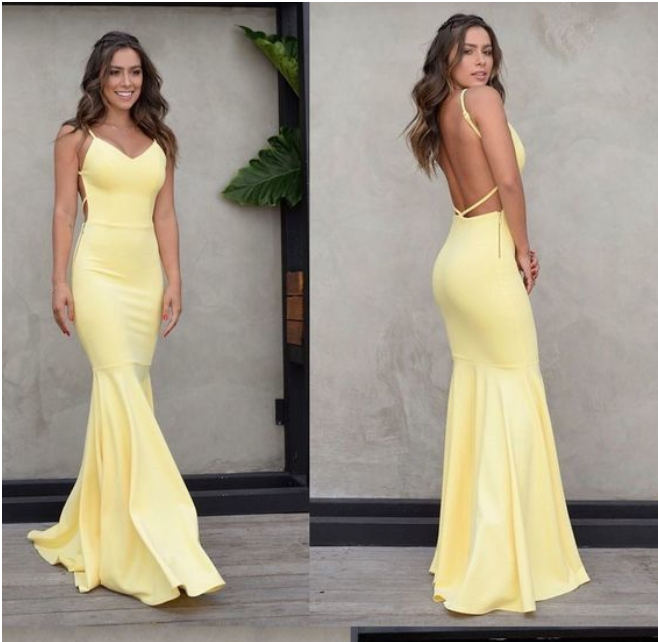 Charming Yellow Backless Prom Dress