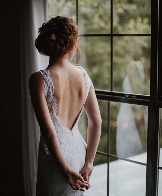 Boho Mermaid Wedding Dress Gorgeous Deep V Neck Full Lace Backless Bridal Gowns