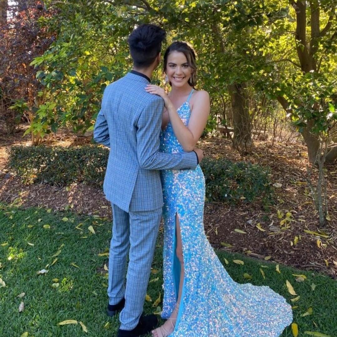 Glitter Sequins Side Split Long Prom Dresses Spaghetti V Neck Sexy Lace Up Backless Party Gowns